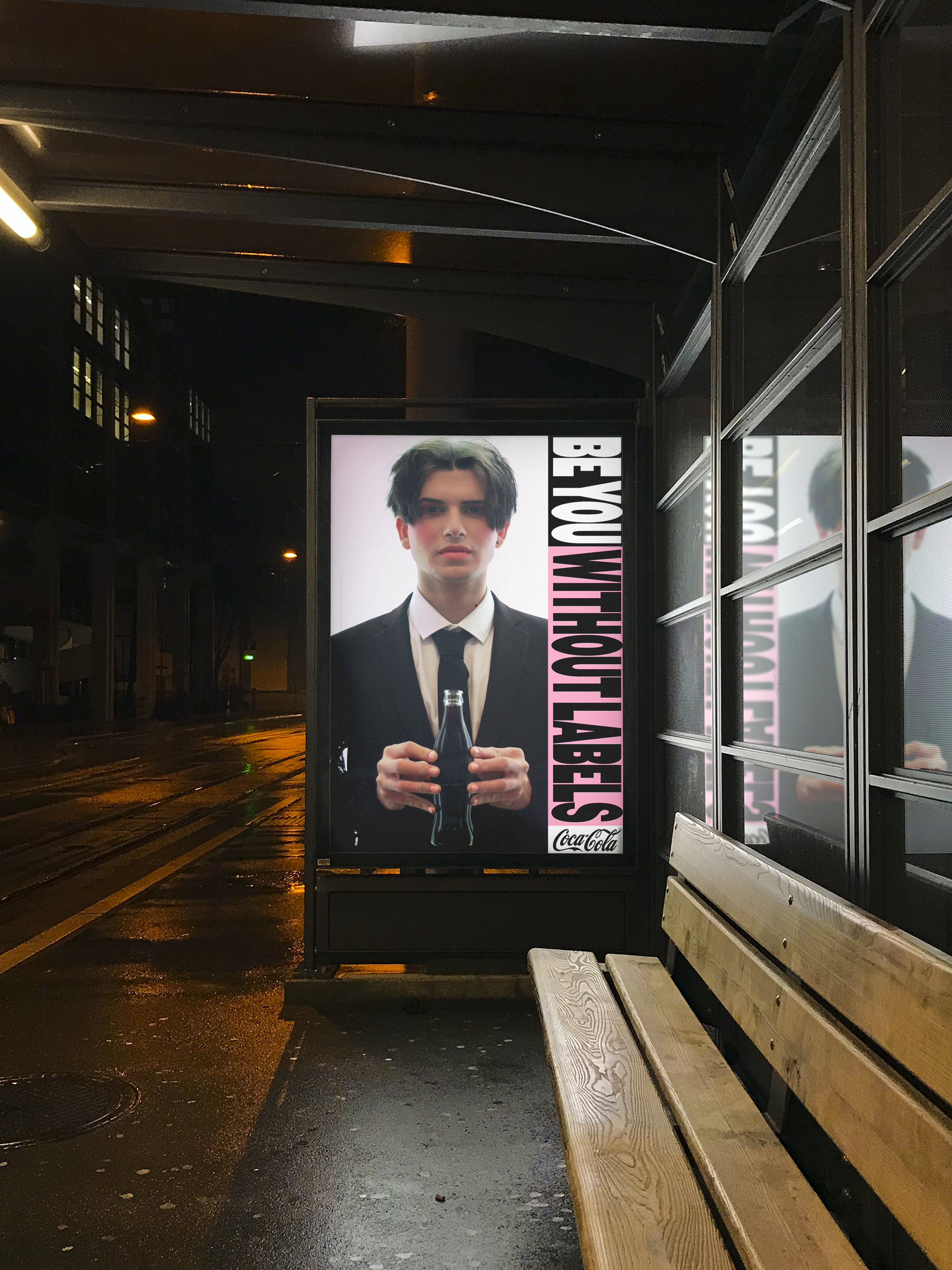 Be You Without Labels is a theoretical campaign for Coca Cola created in collaboration with Robert Goddard (Fashion Designer) and Charlie Thorrington (Photographer). It aims to present an alternative and more inclusive marketing strategy for Coca Cola; demonstrating their values as a brand and exercising their leading and influential platform to promote progressive social change and inclusive dialogues.